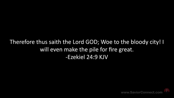 Therefore thus saith the Lord GOD; Woe to the bloody city! I will even make the pile for fire great. -Ezekiel 24:9 KJV
