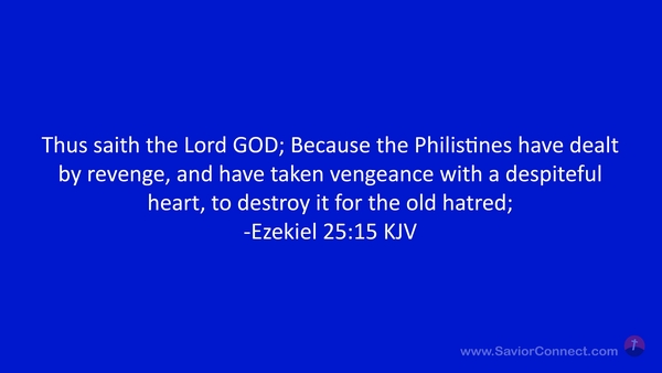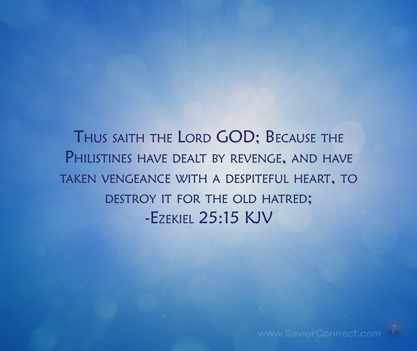Thus saith the Lord GOD; Because the Philistines have dealt by revenge, and have taken vengeance with a despiteful heart, to destroy it for the old hatred; -Ezekiel 25:15 KJV