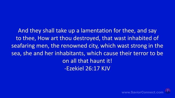 And they shall take up a lamentation for thee, and say to thee, How art thou destroyed, that wast inhabited of seafaring men, the renowned city, which wast strong in the sea, she and her inhabitants, which cause their terror to be on all that haunt it! -Ezekiel 26:17 KJV