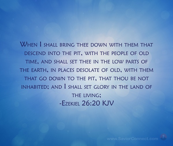 When I shall bring thee down with them that descend into the pit, with the people of old time, and shall set thee in the low parts of the earth, in places desolate of old, with them that go down to the pit, that thou be not inhabited; and I shall set glory in the land of the living; -Ezekiel 26:20 KJV