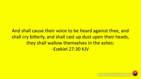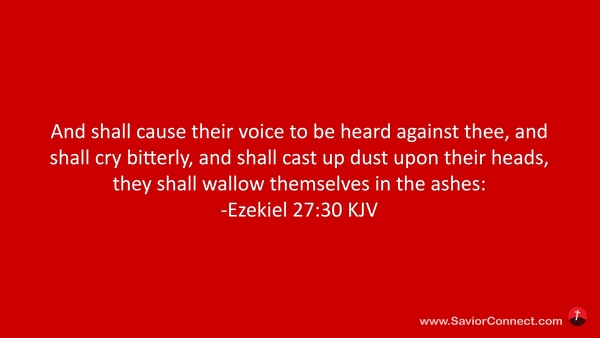 And shall cause their voice to be heard against thee, and shall cry bitterly, and shall cast up dust upon their heads, they shall wallow themselves in the ashes: -Ezekiel 27:30 KJV