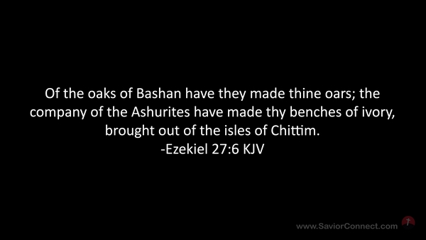 Of the oaks of Bashan have they made thine oars; the company of the Ashurites have made thy benches of ivory, brought out of the isles of Chittim. -Ezekiel 27:6 KJV