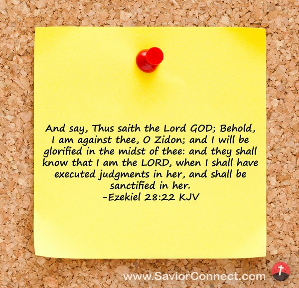 And say, Thus saith the Lord GOD; Behold, I am against thee, O Zidon; and I will be glorified in the midst of thee: and they shall know that I am the LORD, when I shall have executed judgments in her, and shall be sanctified in her. -Ezekiel 28:22 KJV