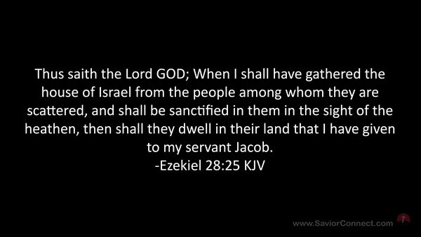 Thus saith the Lord GOD; When I shall have gathered the house of Israel from the people among whom they are scattered, and shall be sanctified in them in the sight of the heathen, then shall they dwell in their land that I have given to my servant Jacob. -Ezekiel 28:25 KJV