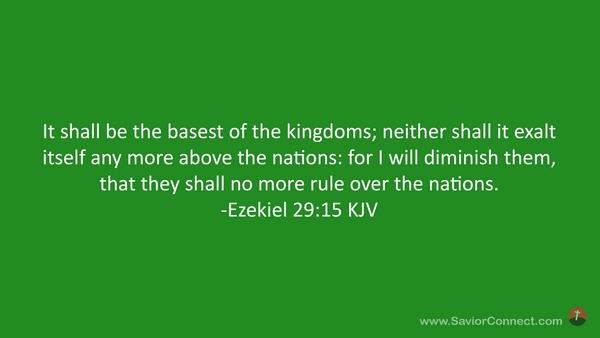 It shall be the basest of the kingdoms; neither shall it exalt itself any more above the nations: for I will diminish them, that they shall no more rule over the nations. -Ezekiel 29:15 KJV