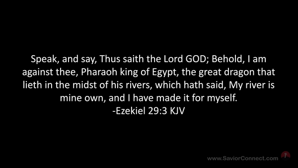 Speak, and say, Thus saith the Lord GOD; Behold, I am against thee, Pharaoh king of Egypt, the great dragon that lieth in the midst of his rivers, which hath said, My river is mine own, and I have made it for myself. -Ezekiel 29:3 KJV