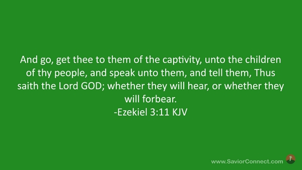 And go, get thee to them of the captivity, unto the children of thy people, and speak unto them, and tell them, Thus saith the Lord GOD; whether they will hear, or whether they will forbear. -Ezekiel 3:11 KJV