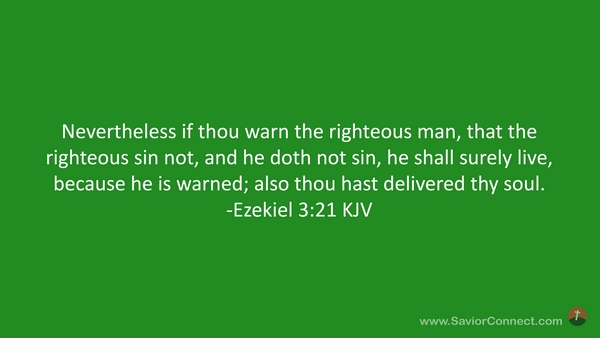 Nevertheless if thou warn the righteous man, that the righteous sin not, and he doth not sin, he shall surely live, because he is warned; also thou hast delivered thy soul. -Ezekiel 3:21 KJV