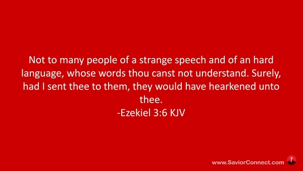 Not to many people of a strange speech and of an hard language, whose words thou canst not understand. Surely, had I sent thee to them, they would have hearkened unto thee. -Ezekiel 3:6 KJV