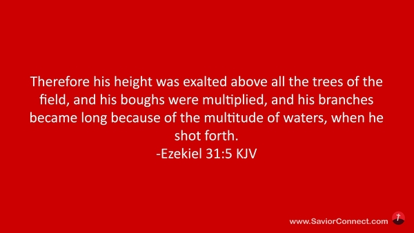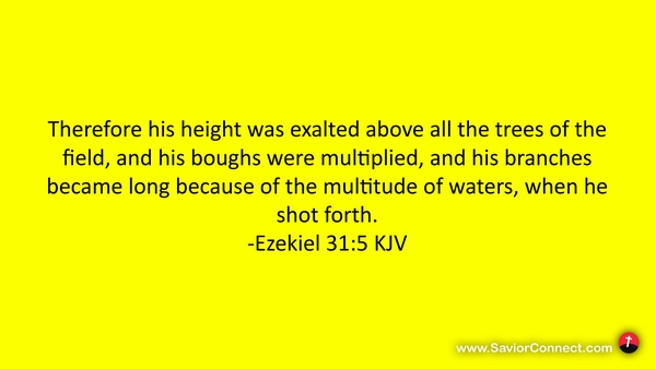 Therefore his height was exalted above all the trees of the field, and his boughs were multiplied, and his branches became long because of the multitude of waters, when he shot forth. -Ezekiel 31:5 KJV