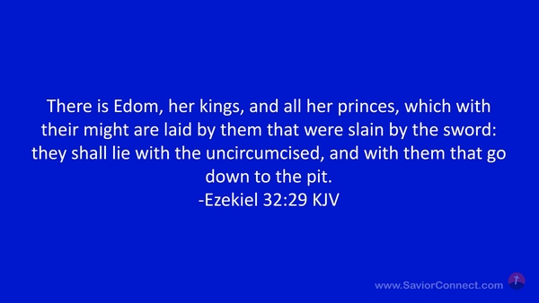 There is Edom, her kings, and all her princes, which with their might are laid by them that were slain by the sword: they shall lie with the uncircumcised, and with them that go down to the pit. -Ezekiel 32:29 KJV