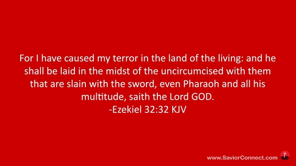 For I have caused my terror in the land of the living: and he shall be laid in the midst of the uncircumcised with them that are slain with the sword, even Pharaoh and all his multitude, saith the Lord GOD. -Ezekiel 32:32 KJV
