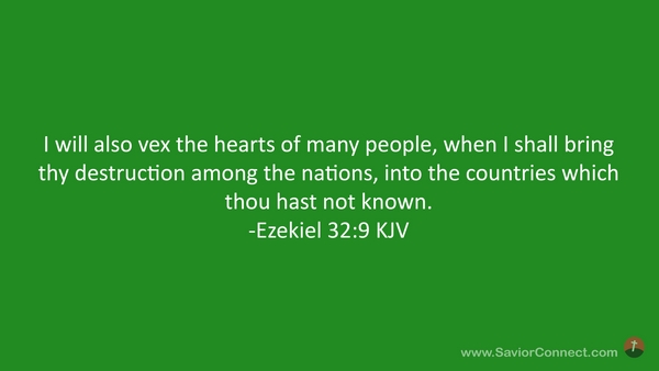 I will also vex the hearts of many people, when I shall bring thy destruction among the nations, into the countries which thou hast not known. -Ezekiel 32:9 KJV