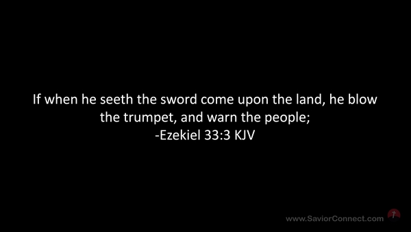 If when he seeth the sword come upon the land, he blow the trumpet, and warn the people; -Ezekiel 33:3 KJV