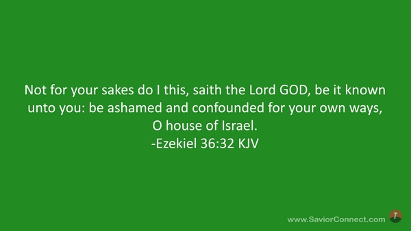 Not for your sakes do I this, saith the Lord GOD, be it known unto you: be ashamed and confounded for your own ways, O house of Israel. -Ezekiel 36:32 KJV
