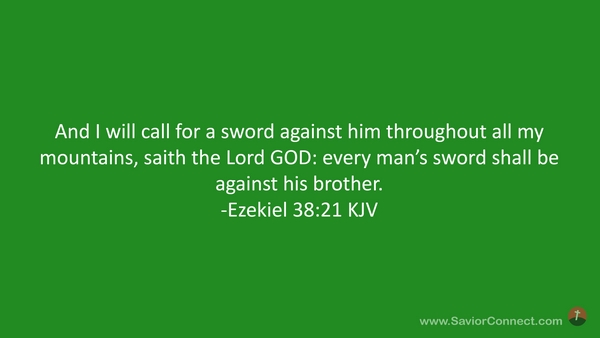 And I will call for a sword against him throughout all my mountains, saith the Lord GOD: every man's sword shall be against his brother. -Ezekiel 38:21 KJV