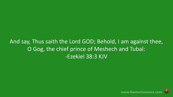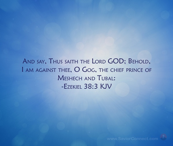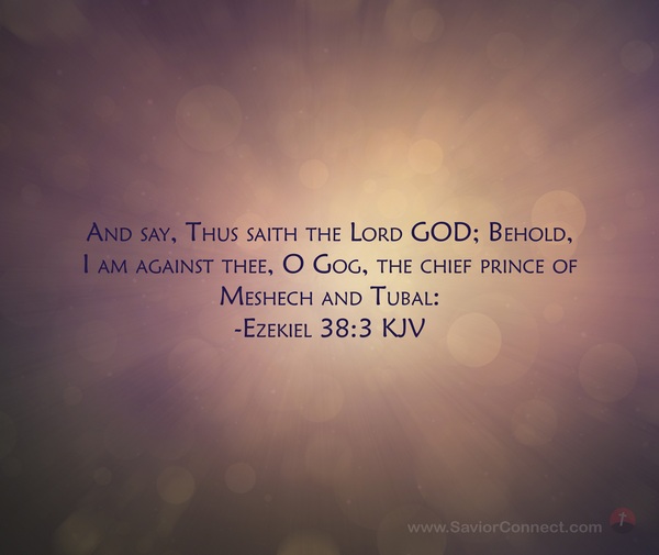 And say, Thus saith the Lord GOD; Behold, I am against thee, O Gog, the chief prince of Meshech and Tubal: -Ezekiel 38:3 KJV