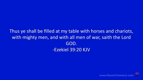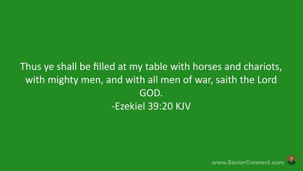 Thus ye shall be filled at my table with horses and chariots, with mighty men, and with all men of war, saith the Lord GOD. -Ezekiel 39:20 KJV