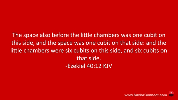 The space also before the little chambers was one cubit on this side, and the space was one cubit on that side: and the little chambers were six cubits on this side, and six cubits on that side. -Ezekiel 40:12 KJV