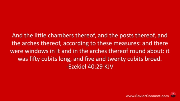 And the little chambers thereof, and the posts thereof, and the arches thereof, according to these measures: and there were windows in it and in the arches thereof round about: it was fifty cubits long, and five and twenty cubits broad. -Ezekiel 40:29 KJV