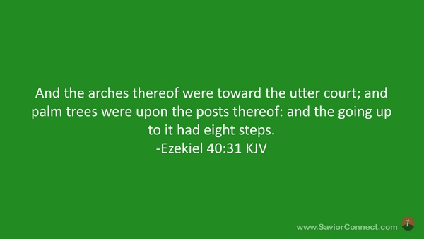 And the arches thereof were toward the utter court; and palm trees were upon the posts thereof: and the going up to it had eight steps. -Ezekiel 40:31 KJV