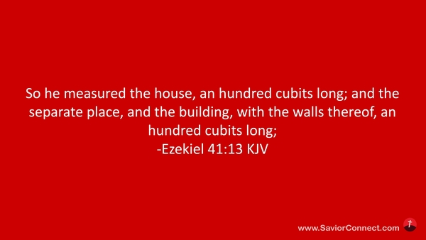 So he measured the house, an hundred cubits long; and the separate place, and the building, with the walls thereof, an hundred cubits long; -Ezekiel 41:13 KJV
