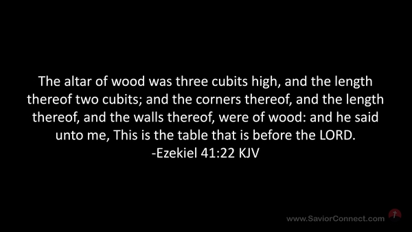 The altar of wood was three cubits high, and the length thereof two cubits; and the corners thereof, and the length thereof, and the walls thereof, were of wood: and he said unto me, This is the table that is before the LORD. -Ezekiel 41:22 KJV