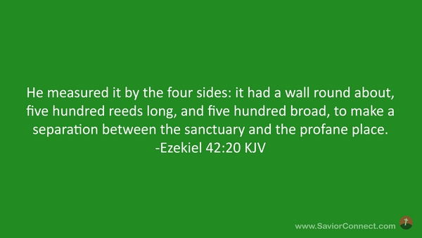 He measured it by the four sides: it had a wall round about, five hundred reeds long, and five hundred broad, to make a separation between the sanctuary and the profane place. -Ezekiel 42:20 KJV