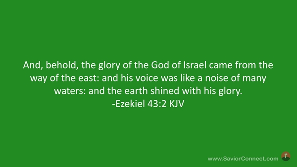And, behold, the glory of the God of Israel came from the way of the east: and his voice was like a noise of many waters: and the earth shined with his glory. -Ezekiel 43:2 KJV