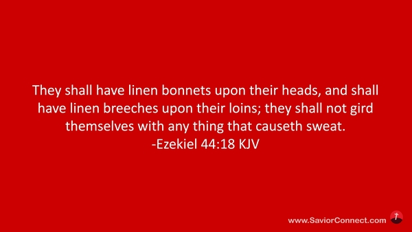They shall have linen bonnets upon their heads, and shall have linen breeches upon their loins; they shall not gird themselves with any thing that causeth sweat. -Ezekiel 44:18 KJV