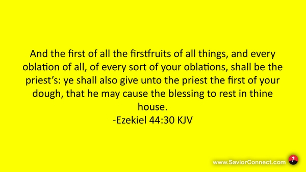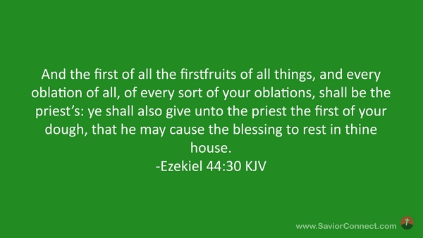 And the first of all the firstfruits of all things, and every oblation of all, of every sort of your oblations, shall be the priest's: ye shall also give unto the priest the first of your dough, that he may cause the blessing to rest in thine house. -Ezekiel 44:30 KJV