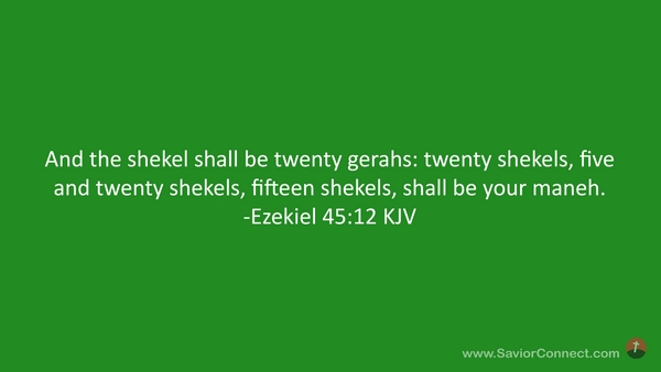 And the shekel shall be twenty gerahs: twenty shekels, five and twenty shekels, fifteen shekels, shall be your maneh. -Ezekiel 45:12 KJV