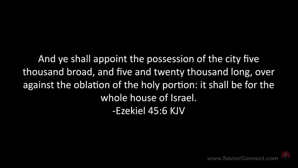 And ye shall appoint the possession of the city five thousand broad, and five and twenty thousand long, over against the oblation of the holy portion: it shall be for the whole house of Israel. -Ezekiel 45:6 KJV