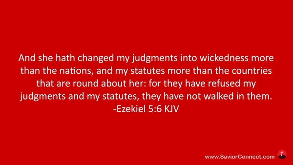 And she hath changed my judgments into wickedness more than the nations, and my statutes more than the countries that are round about her: for they have refused my judgments and my statutes, they have not walked in them. -Ezekiel 5:6 KJV