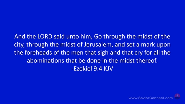 And the LORD said unto him, Go through the midst of the city, through the midst of Jerusalem, and set a mark upon the foreheads of the men that sigh and that cry for all the abominations that be done in the midst thereof. -Ezekiel 9:4 KJV