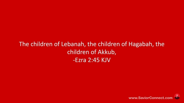 The children of Lebanah, the children of Hagabah, the children of Akkub, -Ezra 2:45 KJV