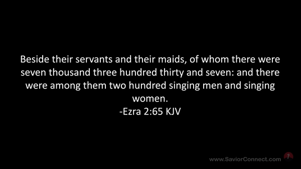 Beside their servants and their maids, of whom there were seven thousand three hundred thirty and seven: and there were among them two hundred singing men and singing women. -Ezra 2:65 KJV