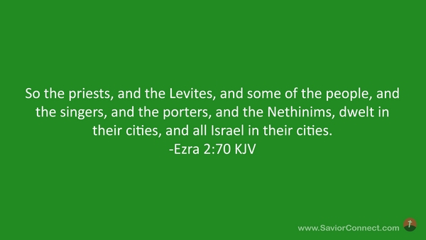 So the priests, and the Levites, and some of the people, and the singers, and the porters, and the Nethinims, dwelt in their cities, and all Israel in their cities. -Ezra 2:70 KJV