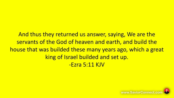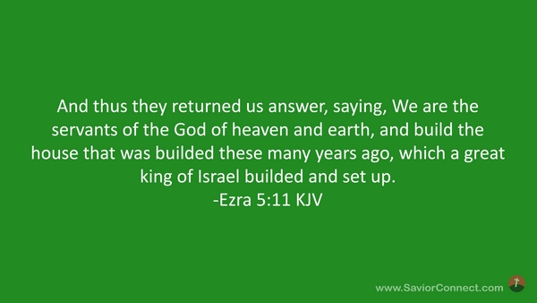 And thus they returned us answer, saying, We are the servants of the God of heaven and earth, and build the house that was builded these many years ago, which a great king of Israel builded and set up. -Ezra 5:11 KJV