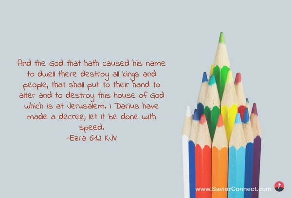 And the God that hath caused his name to dwell there destroy all kings and people, that shall put to their hand to alter and to destroy this house of God which is at Jerusalem. I Darius have made a decree; let it be done with speed. -Ezra 6:12 KJV
