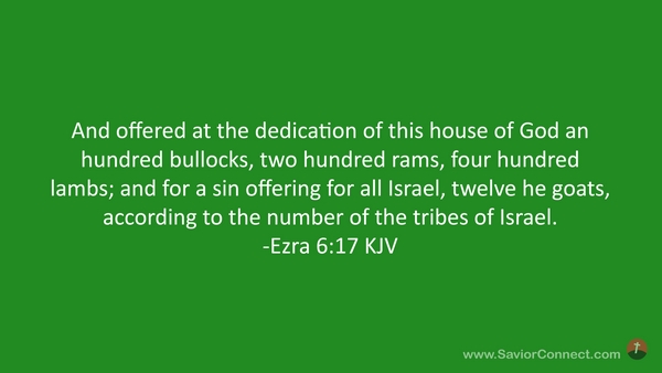 And offered at the dedication of this house of God an hundred bullocks, two hundred rams, four hundred lambs; and for a sin offering for all Israel, twelve he goats, according to the number of the tribes of Israel. -Ezra 6:17 KJV