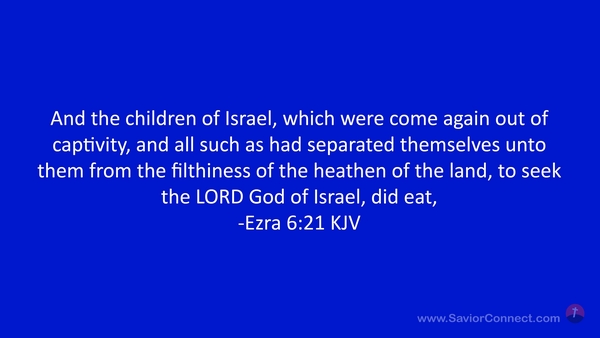 And the children of Israel, which were come again out of captivity, and all such as had separated themselves unto them from the filthiness of the heathen of the land, to seek the LORD God of Israel, did eat, -Ezra 6:21 KJV