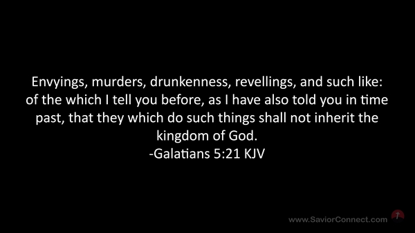 Envyings, murders, drunkenness, revellings, and such like: of the which I tell you before, as I have also told you in time past, that they which do such things shall not inherit the kingdom of God. -Galatians 5:21 KJV