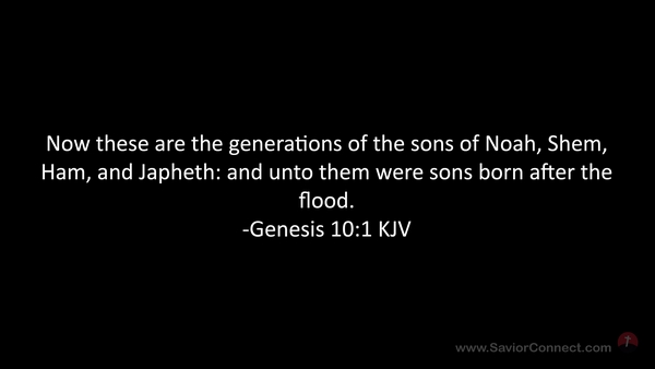 Now these are the generations of the sons of Noah, Shem, Ham, and Japheth: and unto them were sons born after the flood. -Genesis 10:1 KJV