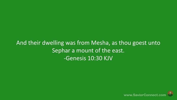 And their dwelling was from Mesha, as thou goest unto Sephar a mount of the east. -Genesis 10:30 KJV