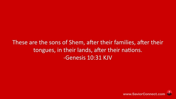 These are the sons of Shem, after their families, after their tongues, in their lands, after their nations. -Genesis 10:31 KJV