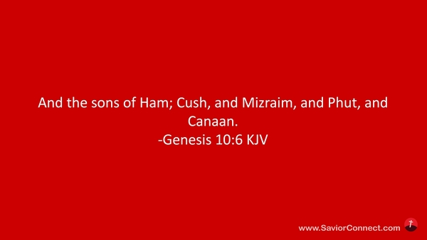 And the sons of Ham; Cush, and Mizraim, and Phut, and Canaan. -Genesis 10:6 KJV
