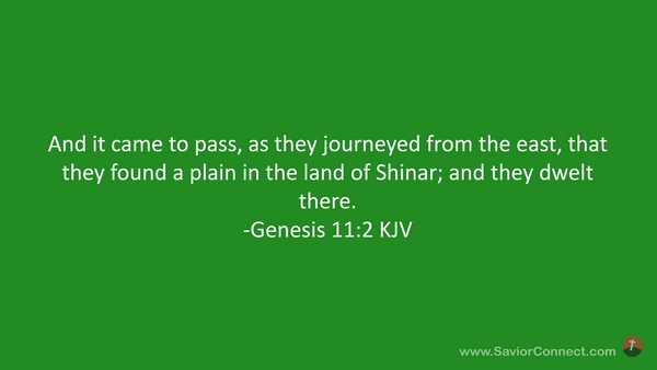 And it came to pass, as they journeyed from the east, that they found a plain in the land of Shinar; and they dwelt there. -Genesis 11:2 KJV