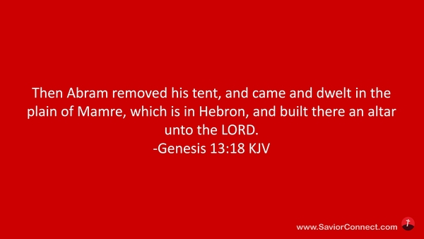 Then Abram removed his tent, and came and dwelt in the plain of Mamre, which is in Hebron, and built there an altar unto the LORD. -Genesis 13:18 KJV