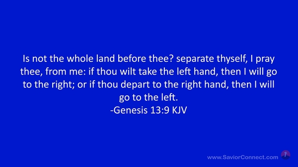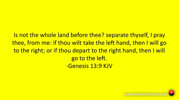 Is not the whole land before thee? separate thyself, I pray thee, from me: if thou wilt take the left hand, then I will go to the right; or if thou depart to the right hand, then I will go to the left. -Genesis 13:9 KJV
